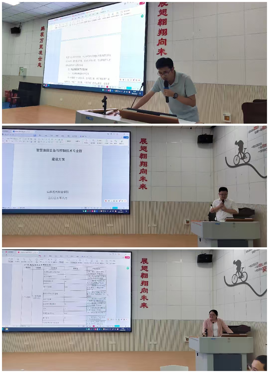 智能制造學院副院長吳上展示了《山東省高水平高職學校和專業(yè)群建設(shè)計劃(2025-2027年)申報書》,張汝山院長強調(diào),一定要將專業(yè)群建設(shè)置于時代背景下,按世界、國家、省的邏輯分層思考,并結(jié)合現(xiàn)有資源打造特色品牌,講好“勝職故事”。
