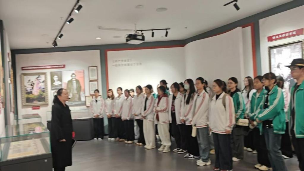 當(dāng)天下午,學(xué)生們冒雨走進(jìn)《共產(chǎn)黨宣言》陳列館。館內(nèi)珍貴的歷史文物、詳實的文獻(xiàn)資料與逼真的場景復(fù)原,生動再現(xiàn)了早期共產(chǎn)黨人傳播真理、播種信仰的艱辛歷程。在講解員的引導(dǎo)下,同學(xué)們依次參觀了《共產(chǎn)黨宣言》在世界、在中國、在廣饒三大展區(qū),深刻感悟這一偉大文獻(xiàn)對世界共產(chǎn)主義運動、中國革命進(jìn)程以及廣饒地方實踐的深遠(yuǎn)影響。大家細(xì)致了解《共產(chǎn)黨宣言》中文首譯本從問世、傳播到指導(dǎo)革命實踐的完整歷程,不時駐足凝望、低聲交流,在莊重而沉浸的氛圍中,真切體會到革命先烈堅守信仰、追求真理、不屈不撓的偉大精神。