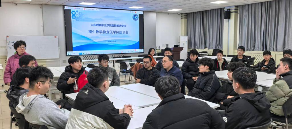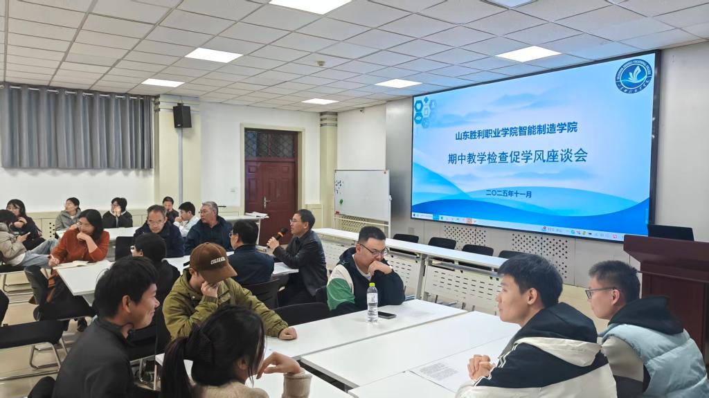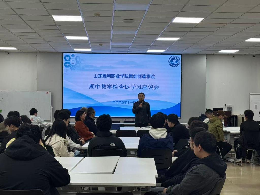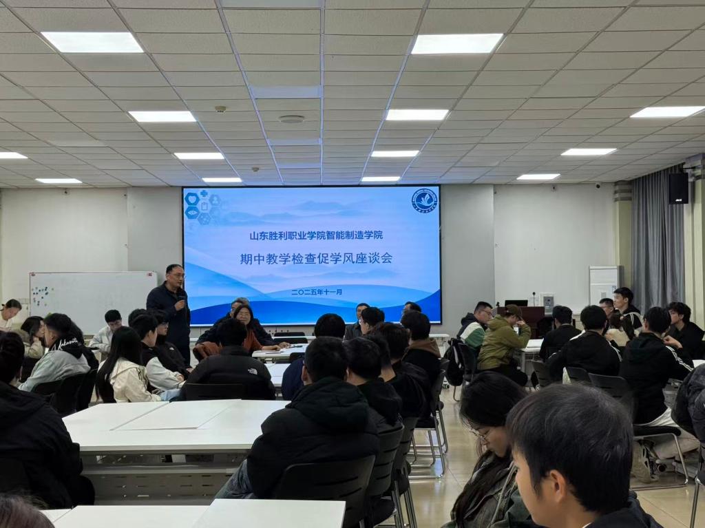 為強化學風建設(shè)、助力學生早日成材,山東勝利職業(yè)學院智能制造學院于2025年11月12日、13、16日連續(xù)三天召開期中教學檢查“促學風 助成才”座談會。座談會聚焦學生學業(yè)發(fā)展核心需求,圍繞課堂教學質(zhì)量提升、專升本備考規(guī)劃、技能證書獲取路徑及就業(yè)創(chuàng)業(yè)指導等議題展開深入探討,旨在通過傾聽學生心聲,了解學生訴求,推動“以學生為中心”的教育理念落地。