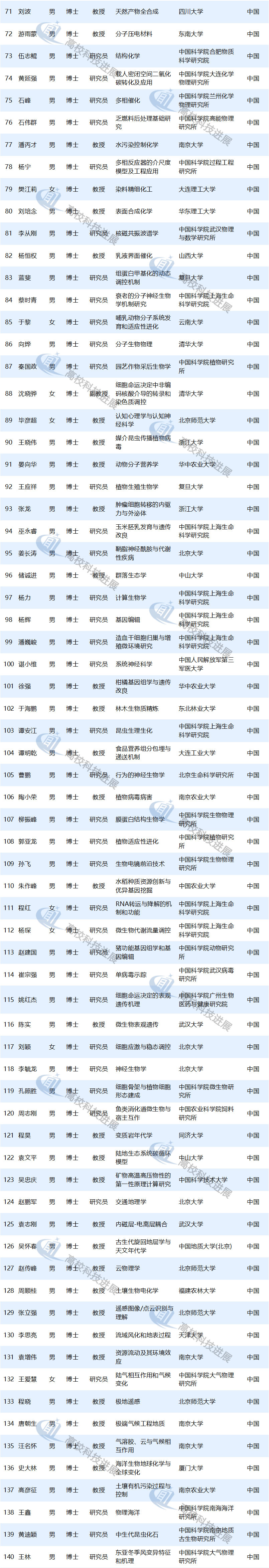 引人注目的是,非“雙一流”、非“985”“211”高校占15所,共有20位入選者,中國(guó)人民解放軍第三軍醫(yī)大學(xué)和深圳大學(xué)各有3人,山西大學(xué)有2人,大連工業(yè)大學(xué)、福建農(nóng)林大學(xué)、廣東工業(yè)大學(xué)、廣州大學(xué)、河南師范大學(xué)、南方科技大學(xué)、南方醫(yī)科大學(xué)、南京醫(yī)科大學(xué)、首都醫(yī)科大學(xué)、溫州醫(yī)科大學(xué)、燕山大學(xué)、中國(guó)人民解放軍海軍工程大學(xué)各有1人。