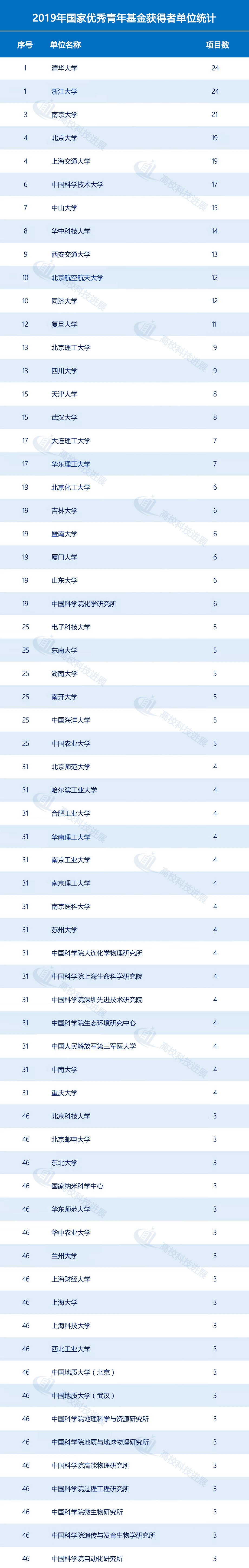 2019年優(yōu)秀青年科學(xué)基金項(xiàng)目統(tǒng)計(jì)