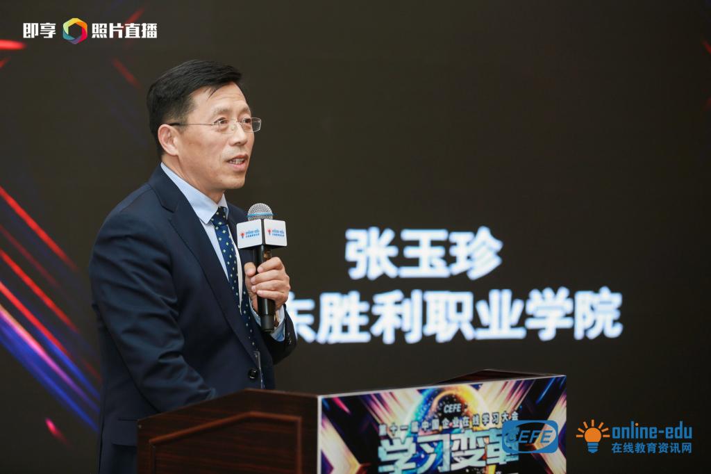 會上,張玉珍院長作為受邀嘉賓,做了“產(chǎn)教融合--在線教育的機會與挑戰(zhàn)”的主題演講,從新職教背景、產(chǎn)教融合的發(fā)展歷程再到深度產(chǎn)教融合以及混合所有制等四個方面做了精彩分享。提出,高職院校應(yīng)不斷加強產(chǎn)教融合和校企合作,深化產(chǎn)教融合,打造混合所有制職業(yè)教育模式。