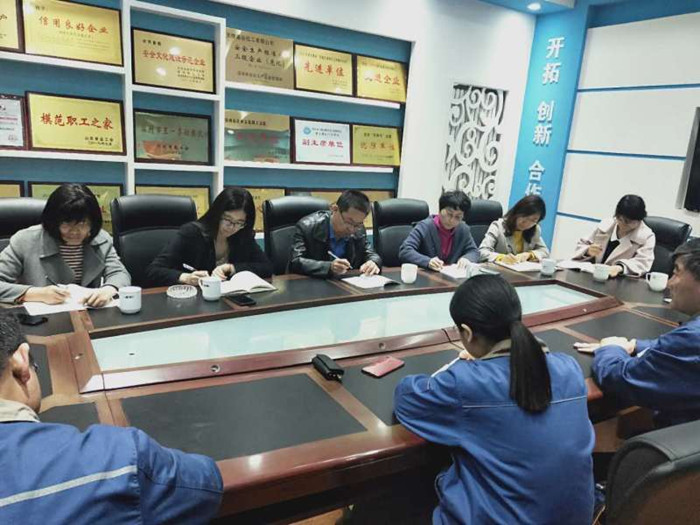 參觀完成后,雙方進行了座談。鑫岳化工黨委常委、工會主席于克龍、人力資源部王海娟部長介紹了鑫岳化工的企業(yè)概況和發(fā)展前景,劉立支院長介紹了山東勝利職業(yè)學(xué)院的歷史、發(fā)展以及應(yīng)用化工專業(yè)人才培養(yǎng)情況。雙方進行了深入交流,廣泛探討了有關(guān)學(xué)生招生、實習(xí)、就業(yè)、培養(yǎng)方案制定、共同育人、師資隊伍建設(shè)等校企合作相關(guān)事宜,在眾多問題上達成了一致。