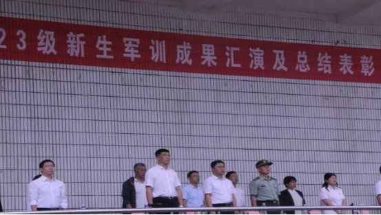 2023年09月23日九點(diǎn)半在操場隆重舉行了2023級新生軍訓(xùn)匯演。在莊嚴(yán)的升旗儀式中,在雄壯的國歌聲中,五星紅旗緩緩升起,全體人員莊嚴(yán)肅立,面向國旗行注目禮。學(xué)校領(lǐng)導(dǎo)對全體新生的勤奮努力和取得的豐碩成果表示了充分肯定,對為軍訓(xùn)付出辛勤汗水的教官們給予了高度贊揚(yáng),對為軍訓(xùn)做出積極貢獻(xiàn)的各級領(lǐng)導(dǎo)和老師表示由衷感謝。