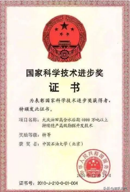 比如,2010年,【大慶油田高含水后期4000萬噸以上持續(xù)穩(wěn)產(chǎn)高效勘探開發(fā)技術(shù)】獲得國家科技進步特等獎。第一完成單位是大慶油田,完成單位包括中國石油大學(北京)、東北石油大學。