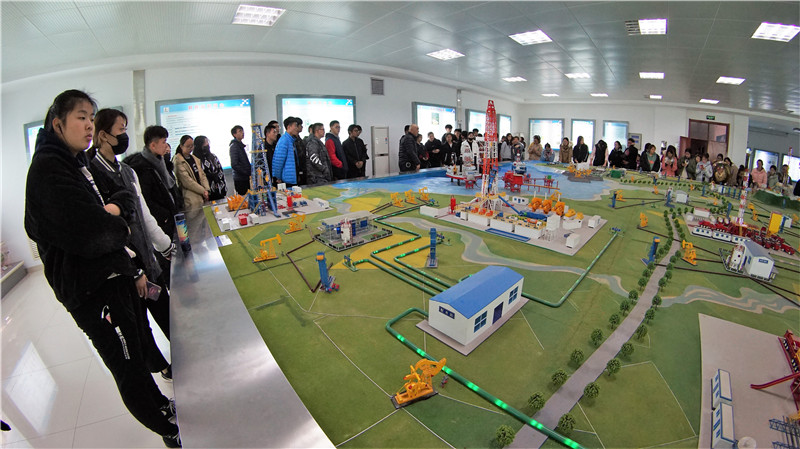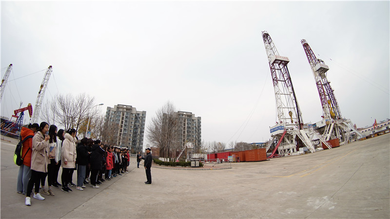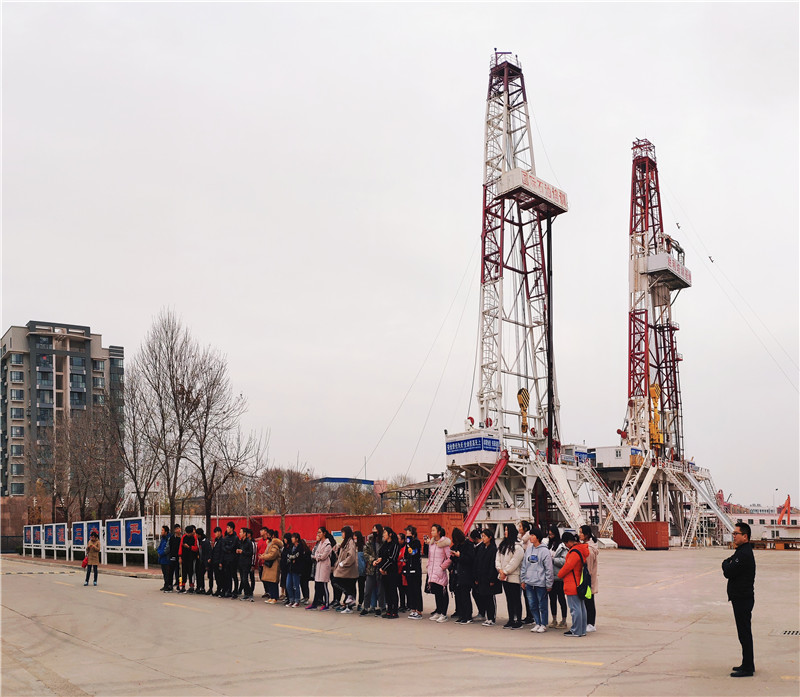 接下來學(xué)生們來到了學(xué)院的技能訓(xùn)練中心,參觀了鉆井與采油實(shí)訓(xùn)現(xiàn)場以及沙盤展廳,通過參觀和聽取講解,學(xué)生們對石油工程相關(guān)領(lǐng)域以及最新的發(fā)展有了初步的認(rèn)識。對國家戰(zhàn)略行業(yè)中占據(jù)重要地位的石油行業(yè)的發(fā)展充滿了自豪和新奇。作為來到石油城求學(xué)的學(xué)子,學(xué)生們紛紛表示要弘揚(yáng)愛國主義,學(xué)習(xí)勝利精神,與重新上路的勝利職業(yè)學(xué)院一起共創(chuàng)美好的未來。