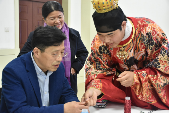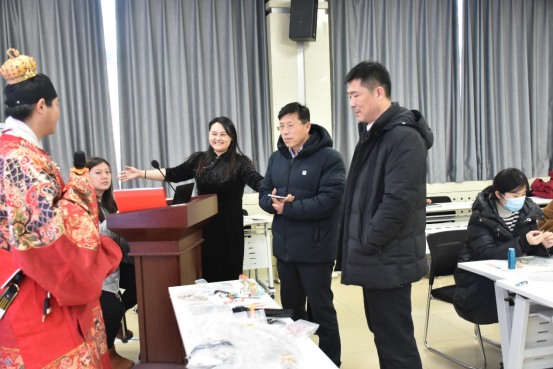 學(xué)校黨委副書(shū)記、院長(zhǎng)張玉珍,學(xué)校黨委委員、副院長(zhǎng)楊峰,學(xué)校黨委委員、副院長(zhǎng)孫衛(wèi)娟來(lái)到活動(dòng)現(xiàn)場(chǎng)為老師們送上最衷心的祝福,與老師們一同體驗(yàn)英山纏花的魅力。
