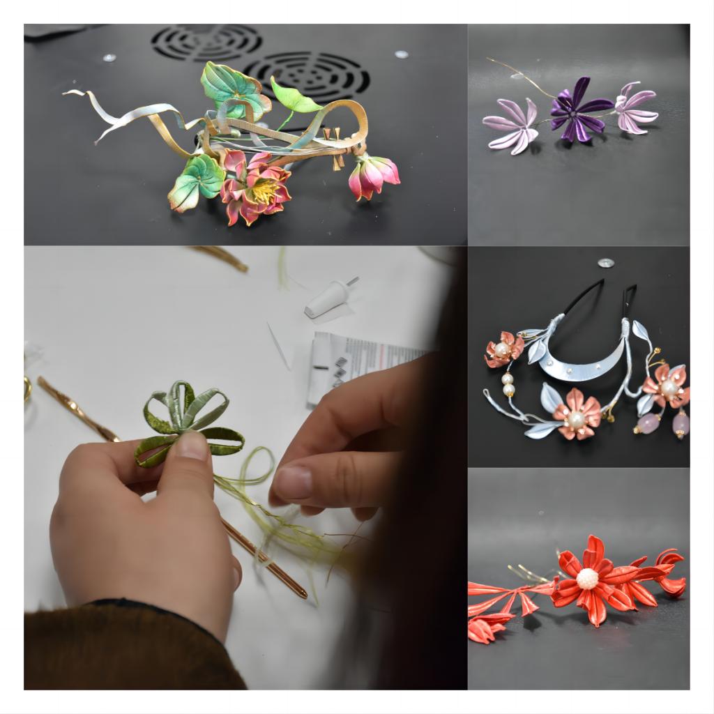 隨后,一個(gè)個(gè)五顏六色,極具創(chuàng)意的發(fā)簪、發(fā)釵、步搖、發(fā)夾等在老師們想象力的碰撞下逐具初形,形成了獨(dú)一無(wú)二的作品。在活動(dòng)的歡樂(lè)氣氛中,老師和現(xiàn)場(chǎng)工作的同學(xué)們一同分享彼此的手工作品,現(xiàn)場(chǎng)溫情滿滿、充滿歡聲笑語(yǔ)。