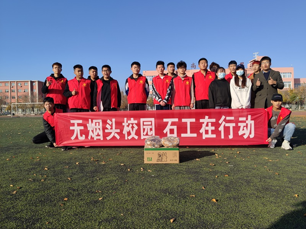學(xué)院定制了“無(wú)煙頭校園,石工在行動(dòng)”宣傳橫幅,用以引起廣大同學(xué)們對(duì)維護(hù)校園環(huán)境整潔的重視。