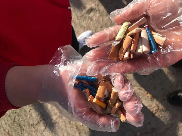 此次活動(dòng)清理了學(xué)校里隨手丟棄的煙頭,并以可視的勞動(dòng)成果向同學(xué)們展示了校園內(nèi)煙頭數(shù)量之大范圍之廣。
