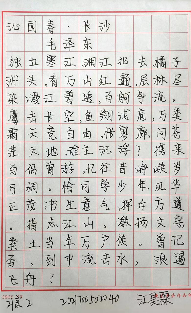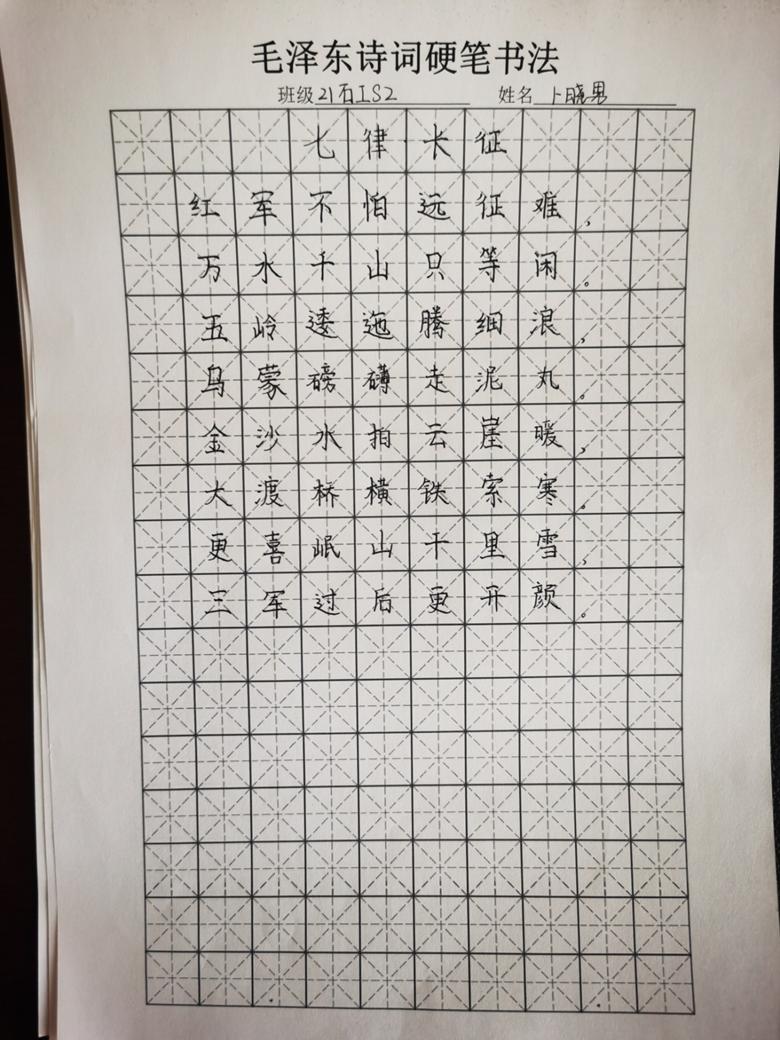 為弘揚(yáng)中華民族優(yōu)秀文化,讓廣大青年學(xué)生感受毛澤東思想的理論魅力,酒店管理學(xué)院思政中文教研室在2021級(jí)學(xué)生中舉辦了毛澤東詩詞硬筆書法活動(dòng)。