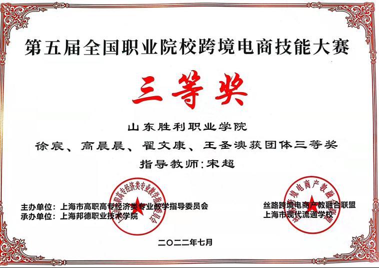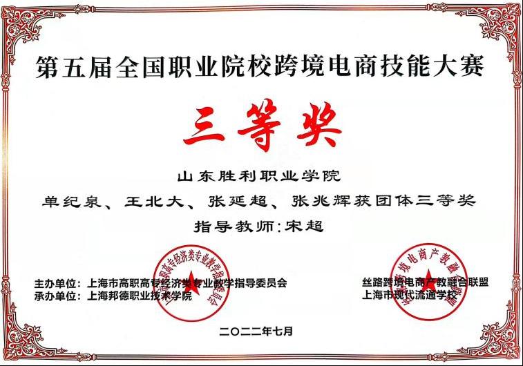 我校電子商務專業(yè)教師宋超老師指導4支隊伍參賽,并在千余支賽隊中脫穎而出,分別取得“團體二等獎”及“團體三等獎”的優(yōu)異成績,大賽組委會也為宋超老師頒發(fā)了“優(yōu)秀指導教師獎”。同時,宋超老師在指導學生參賽的期間,同步設計研發(fā)出適用于本校電子商務專業(yè)日常教學的校本實訓活頁教材,采用“以賽促教”“以賽促學”的方式不斷推進教學改革的校內實踐工作。