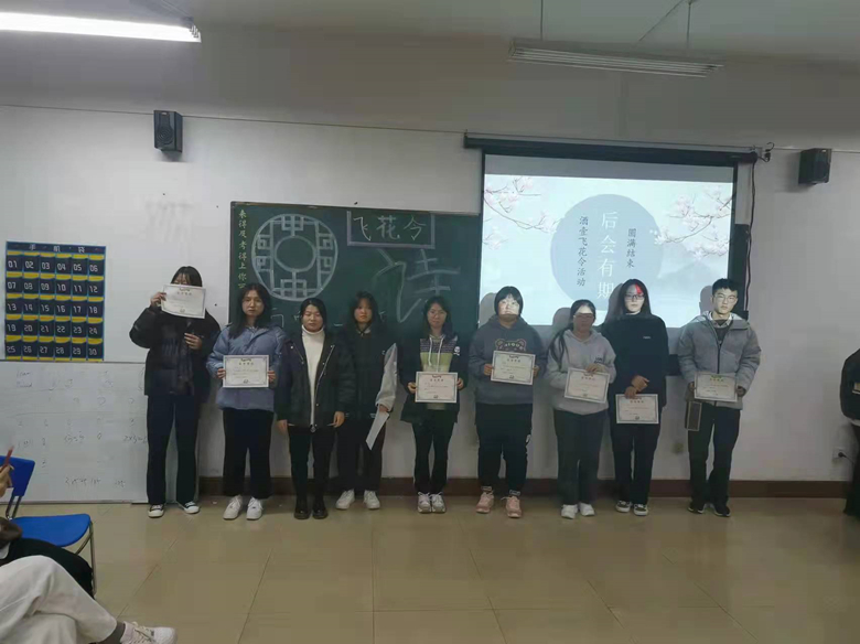 本次古詩詞競賽共有詩詞填空、文學(xué)常識測試、古風(fēng)歌曲演唱和飛花令等環(huán)節(jié),同學(xué)們積極參加,充分展示了自己的才藝和風(fēng)采,教室中掀起熱烈的氣氛。此次古詩詞比賽經(jīng)過一個多小時的激烈角逐,根據(jù)在場評委公平公正的評分,共評出一等獎一名、二等獎兩名和三等獎五名。