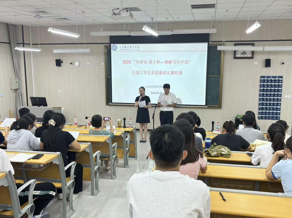 2025年9月8日,由國際學(xué)院承辦的2025年大學(xué)生英語演講大賽校園選拔賽在山東勝利職業(yè)學(xué)院華山路校區(qū)圓滿落幕。本次比賽以"Future Industry, Future Me"為主題,匯集了來自全校各二級(jí)學(xué)院的39名優(yōu)秀學(xué)子同臺(tái)競(jìng)技。
