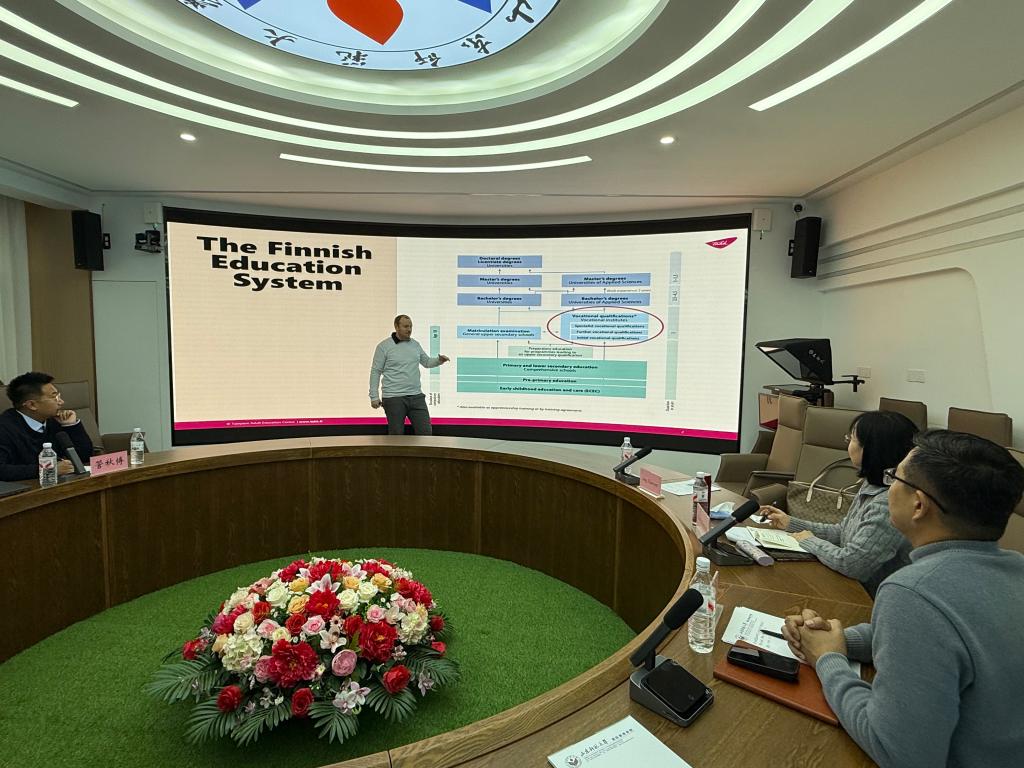 芬蘭坦佩雷成人教育中心(TAKK)是芬蘭知名公辦中高職貫通職業(yè)教育機構(gòu),自1962年成立以來,獲芬蘭教育部正式授權(quán)開展職業(yè)教育教學(xué)工作,是芬蘭職業(yè)教育領(lǐng)域的標(biāo)桿院校。會談中,薩米?普多寧先生詳細(xì)解讀了芬蘭職業(yè)教育體系的層級架構(gòu)、資格認(rèn)證標(biāo)準(zhǔn)及人才培養(yǎng)邏輯,重點分享了坦佩雷成人教育中心在學(xué)徒制培訓(xùn)、職場化實訓(xùn)、模塊化課程設(shè)計等方面的成熟經(jīng)驗,闡釋了芬蘭職業(yè)教育與產(chǎn)業(yè)需求深度融合、資格證書與學(xué)歷教育有機銜接的核心特色。張建民院長向芬方詳細(xì)介紹了山東勝利職業(yè)學(xué)院的辦學(xué)定位、核心專業(yè)建設(shè)成果及國際化合作發(fā)展需求,重點圍繞中芬兩國高等職業(yè)教育體系在培養(yǎng)目標(biāo)、課程設(shè)置、資格認(rèn)證、升學(xué)就業(yè)等方面的契合點,與芬方相關(guān)代表展開深入探討,為雙方后續(xù)探索體系對接銜接路徑奠定了溝通基礎(chǔ)。