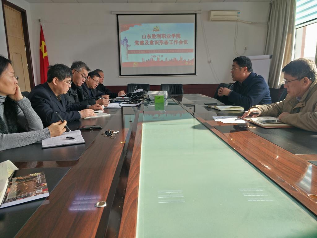 12月17日,山東勝利職業(yè)學院召開黨建及意識形態(tài)工作專題會議,對今年以來我院黨建及思想意識形態(tài)工作情況進行總結回顧、分析研判,對下一步工作進行具體部署。學院副書記仲衛(wèi)部主持會議, 機關職能部門和各二級院負責人參會。