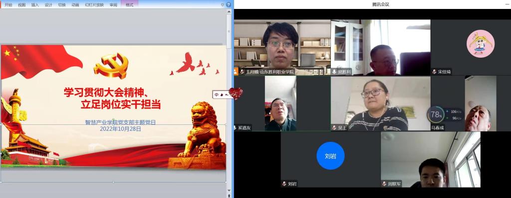 2022年10月28日下午3:00,智慧產(chǎn)業(yè)學(xué)院全體黨員召開2022年10月份主題黨日活動,由于疫情原因,活動采用線上騰訊視頻方式召開。會議由王月娥書記主持,劉巖奚道友晁勝利吳上孫翔馬春成宋佳琦周聯(lián)軍等全部黨員參加了會議。