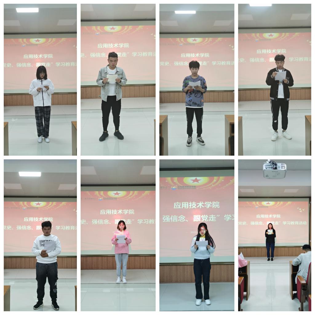 在黨的百年華誕之際,應(yīng)用技術(shù)學(xué)院持續(xù)深化黨史學(xué)習(xí)教育,深入學(xué)習(xí)習(xí)近平總書記重要講話精神,積極營(yíng)造濃厚黨史學(xué)習(xí)氛圍,引導(dǎo)青年學(xué)生匯聚“請(qǐng)黨放心,強(qiáng)國(guó)有我”的青春強(qiáng)音。(供稿人:徐放)