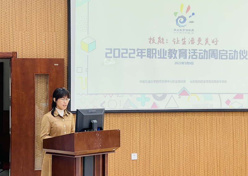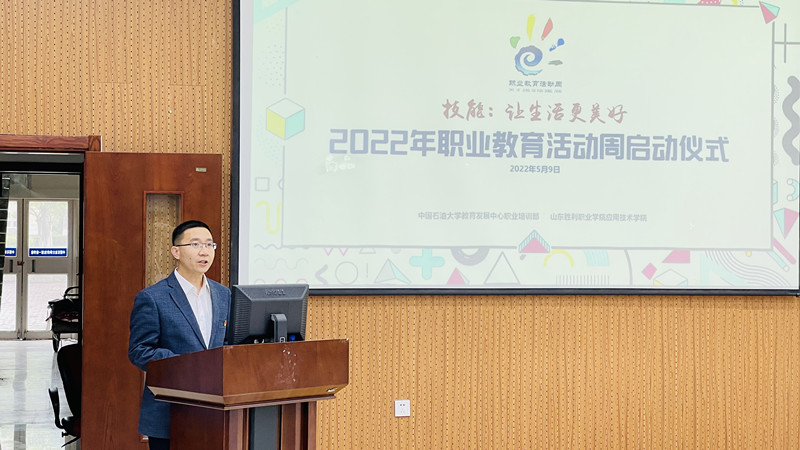 5月9日,應用技術學院在一教樓101教室舉行2022年職業(yè)教育活動周啟動儀式。90名師生代表參加大會。