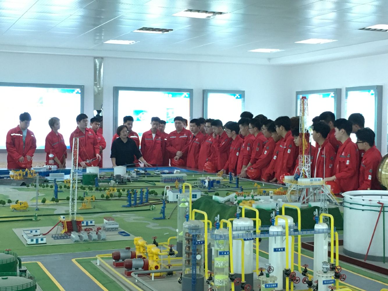 石油工程技術(shù)學(xué)生在勝利油田技能訓(xùn)練中心學(xué)習(xí)石油企業(yè)上下游整體設(shè)備