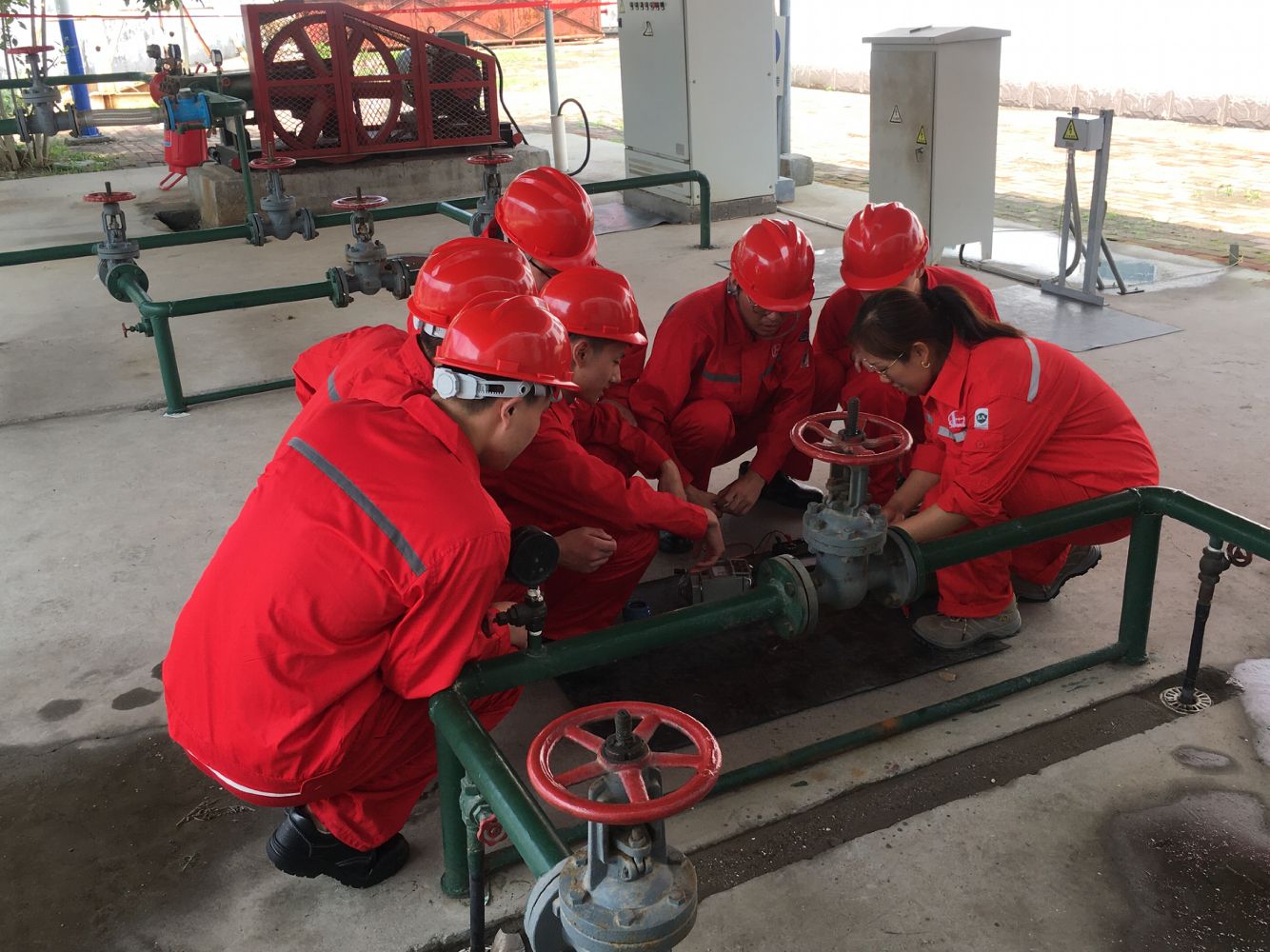 油氣儲(chǔ)運(yùn)技術(shù)學(xué)生在勝利油田技能訓(xùn)練中心進(jìn)行集輸運(yùn)行操作