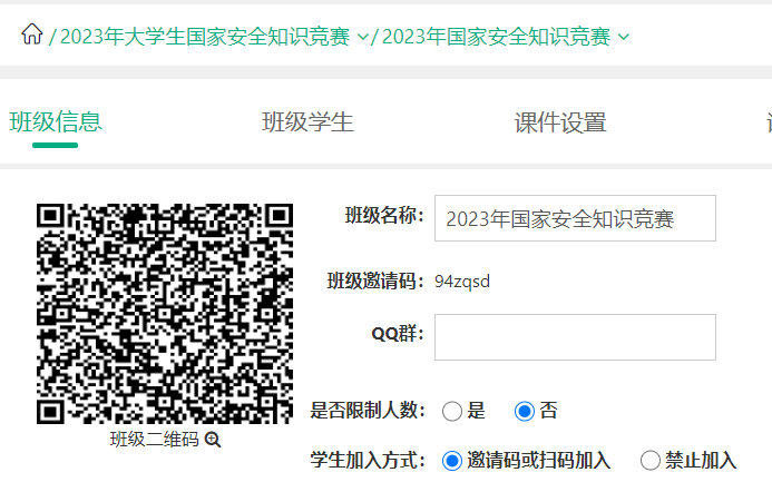 2023年大學(xué)生國(guó)家安全知識(shí)競(jìng)賽職教云課程班邀請(qǐng)碼、二維碼見(jiàn)下圖