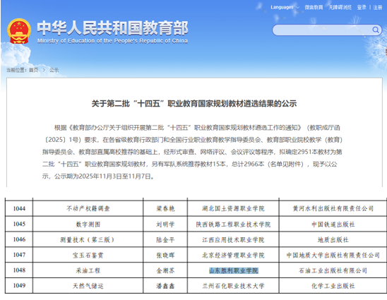近日,教育部辦公廳發(fā)布“關(guān)于第二批“十四五”職業(yè)教育國家規(guī)劃教材遴選結(jié)果的公示”。由我院書記、院長金潮蘇擔(dān)任主編的教材《采油工程》歷經(jīng)多輪嚴(yán)格評審,成功入選,這是我院在教材建設(shè)與教育教學(xué)改革領(lǐng)域取得的又一重大國家級成果。