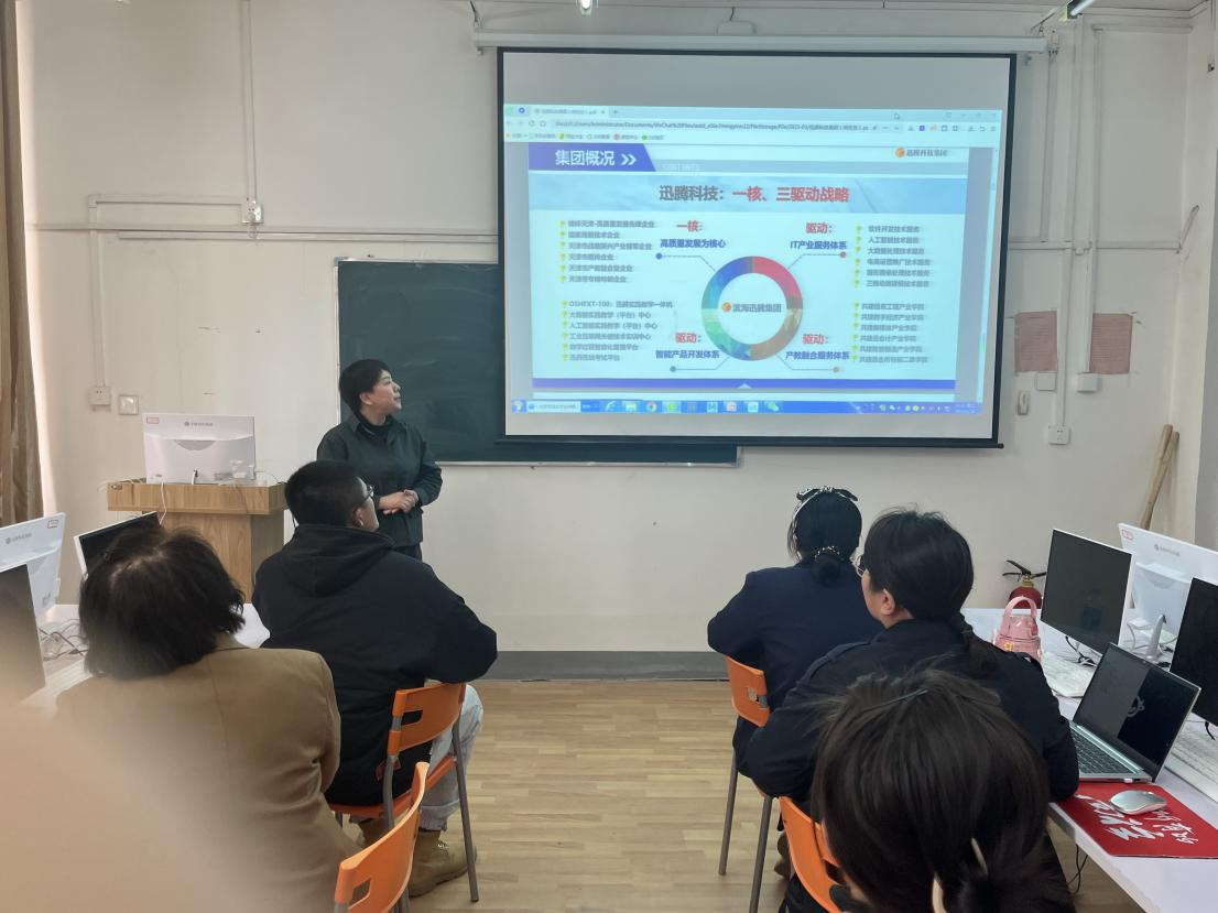 首先,項目總監(jiān)王妍就2022年的工作進(jìn)行了總結(jié)與回顧,并對2023年的工作提出更高的要求與部署:新學(xué)期智慧產(chǎn)業(yè)學(xué)院迅騰校企應(yīng)該在做好學(xué)生日常管理的前提下,在教學(xué)成果、引產(chǎn)入校、大賽、1+X證書和招生上做出更大的突破。深化校企合作,推進(jìn)學(xué)院建設(shè),校企協(xié)同育人,實(shí)現(xiàn)產(chǎn)教融合的高質(zhì)量發(fā)展。