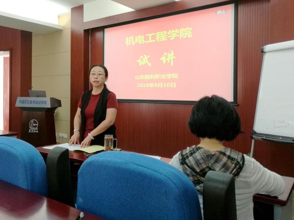 機(jī)電學(xué)院院長(zhǎng)夏雪梅首先致辭,并說(shuō)明了舉辦試講活動(dòng)的意義和必要性,副院長(zhǎng)劉慧芬對(duì)本次試講活動(dòng)提出了具體要求。6名即將在新學(xué)期授課的教師進(jìn)行了說(shuō)課和授課展示。參加試講的教師認(rèn)真準(zhǔn)備,充分展示了扎實(shí)的教學(xué)基本功,贏得了陣陣喝彩。所有老師對(duì)各試講老師肯定了優(yōu)點(diǎn)的同時(shí),提出了很多寶貴的意見(jiàn)和建議,活動(dòng)在熱烈愉悅的氣氛中持續(xù)進(jìn)行。