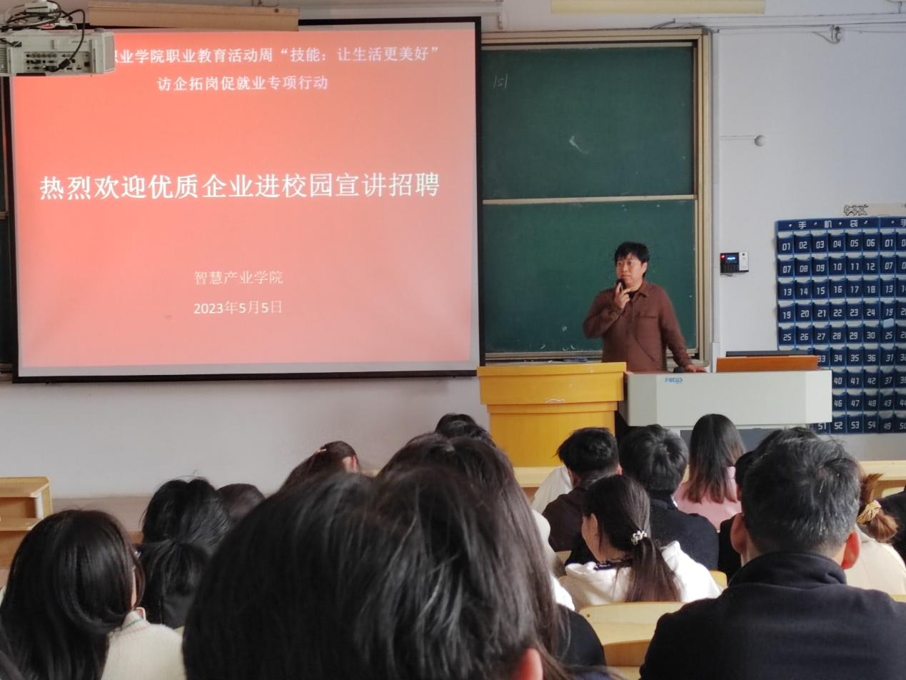 智慧產(chǎn)業(yè)學(xué)院于5月5日下午,分別在炎培學(xué)堂206、208、210教室舉行以“技能:讓生活更美好”為主題的訪企拓崗促就業(yè)專項(xiàng)活動。