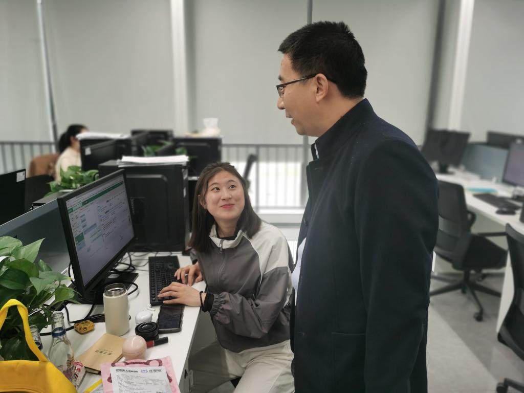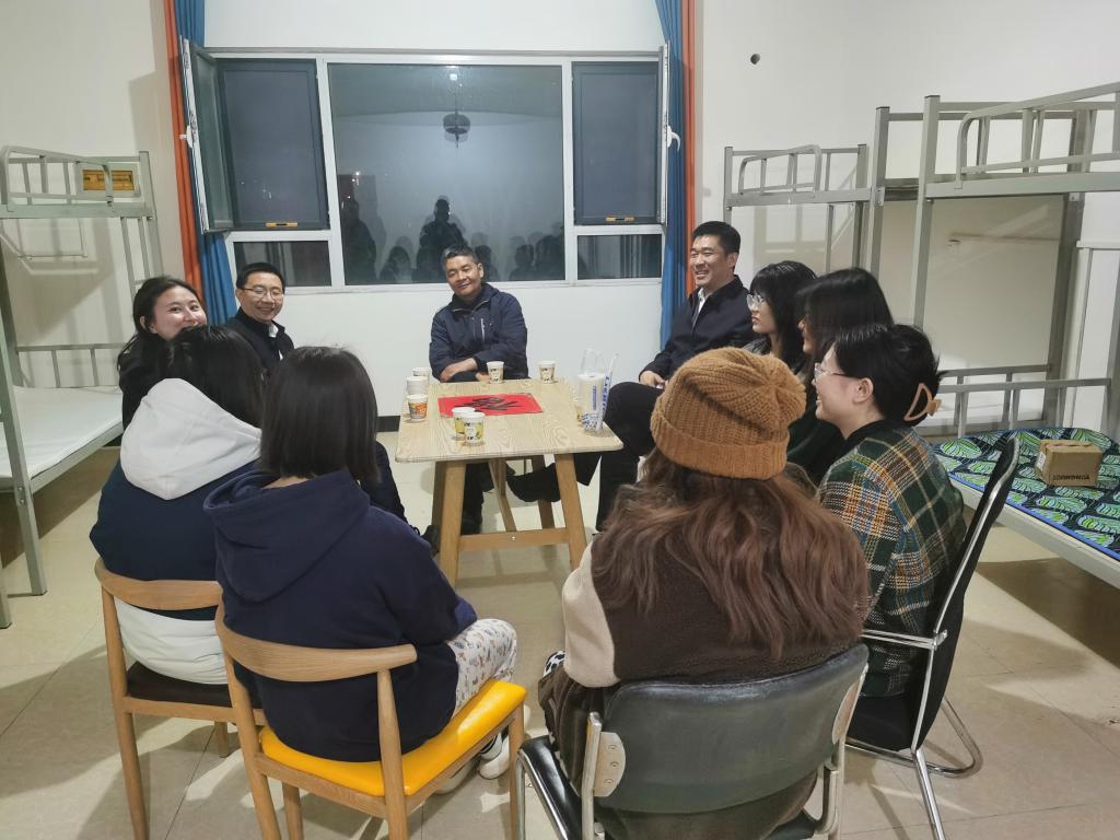 孫姚同與在崗實(shí)習(xí)學(xué)生進(jìn)行交流